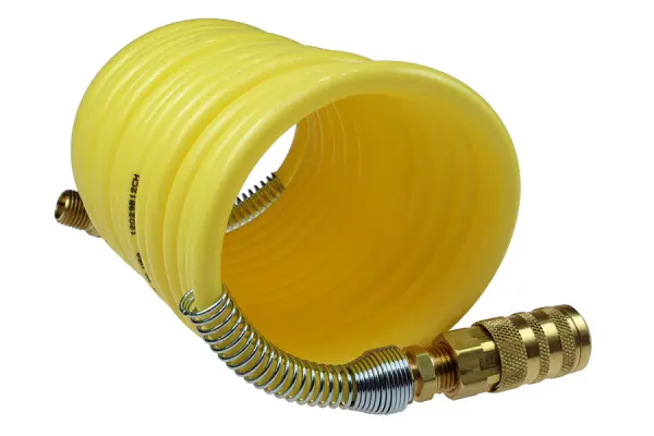 • Nylon Coil, 1/4" x 50', 1/4" 6 Ball Industrial Coupler & 1/4" NPT Swivel Fitting, Yellow
