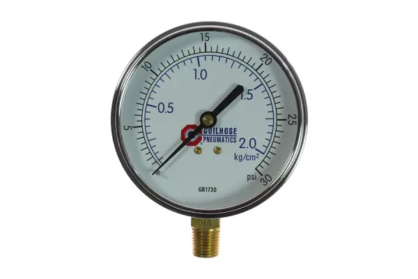 • 3 1/2" Chrome Dial Gauge, 1/4" Bottom Mount, 0-30 psi