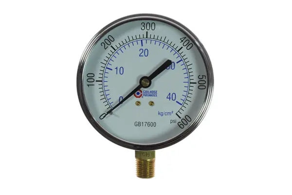 • 3 1/2" Chrome Dial Gauge, 1/4" Bottom Mount, 0-600 psi